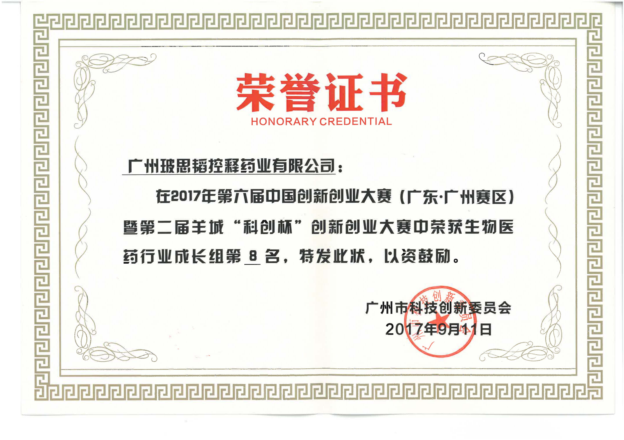 市創(chuàng )新創(chuàng )業(yè)大賽第8名
